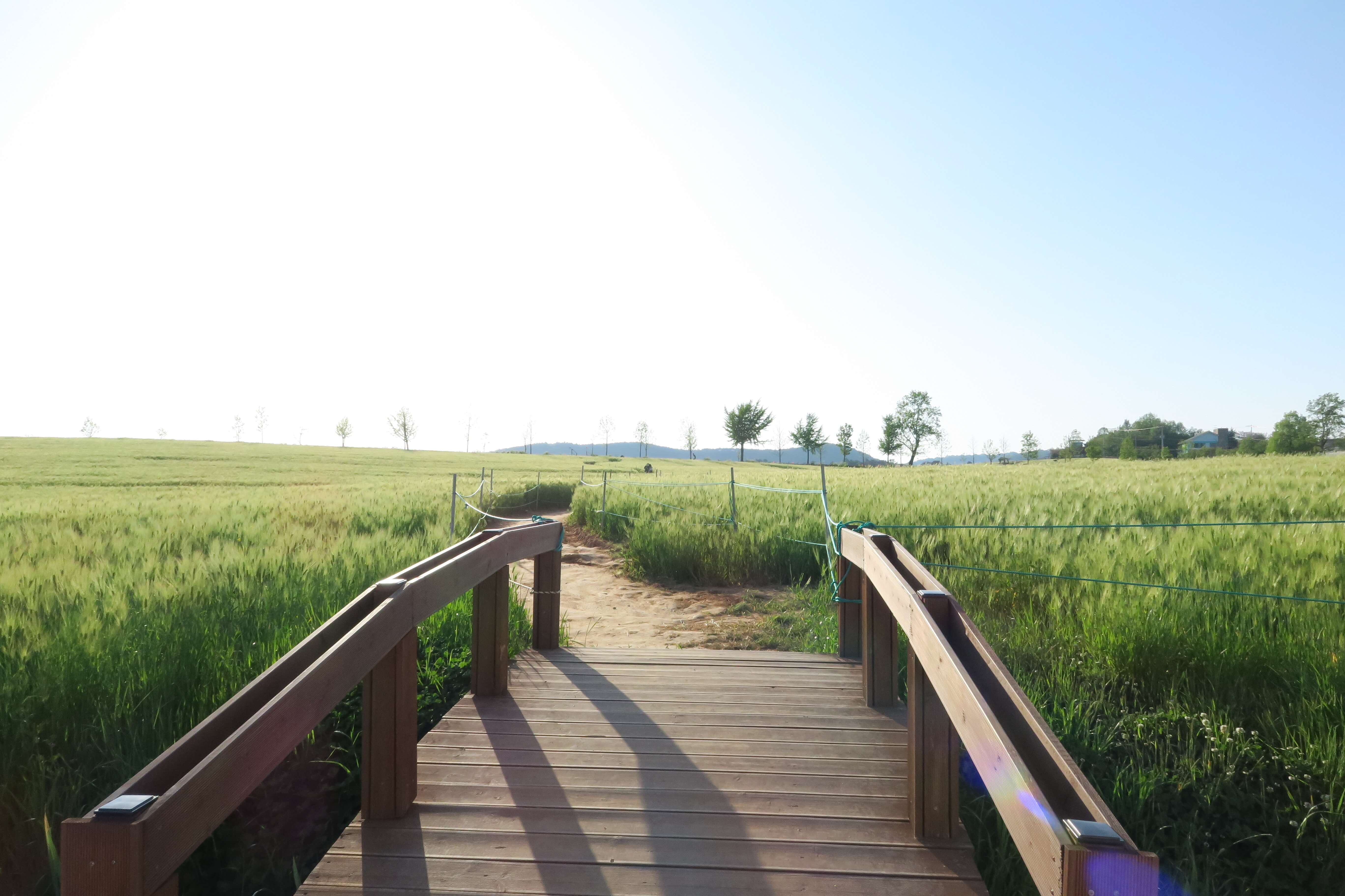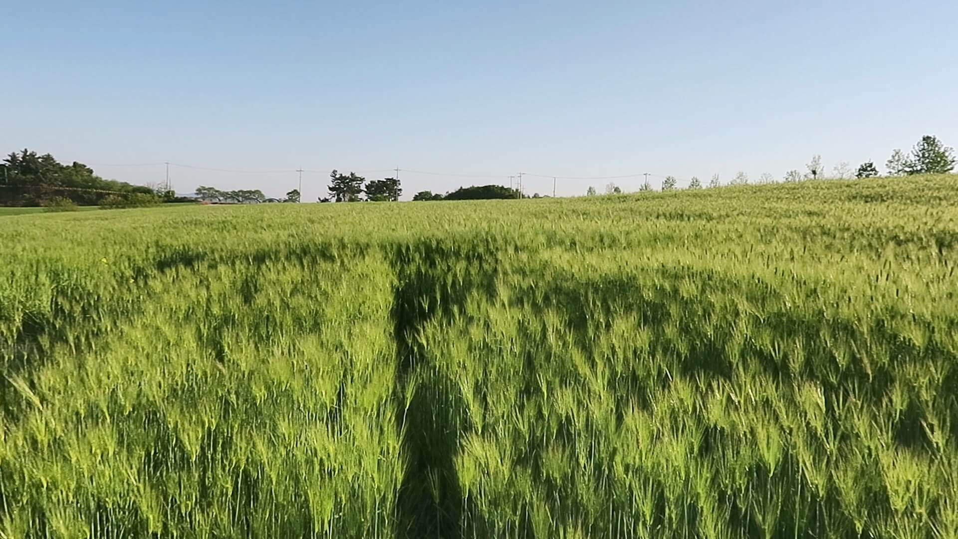 초록 청보리가 끝없이 펼쳐지는 평야가 감성을 자극합니다.